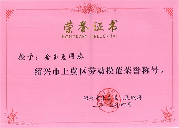 - 公司董事長被授予"紹興市上虞區(qū)勞動(dòng)模范"榮譽(yù)稱號(hào)