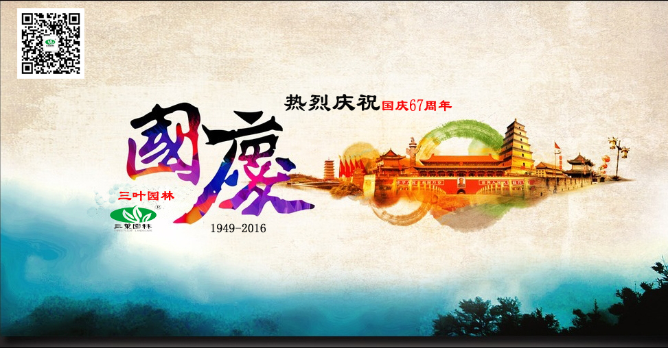 - 又是個金秋的十月,又是個裝滿收獲的季節(jié)。在這個花果飄香的季節(jié)里,我們迎來了祖國67歲的生日,在經(jīng)歷走過來的數(shù)次磨礪后,祖國以其堅強不屈的脊梁高高屹立在世界的東方,在這里,要自豪地對祖國母親說:我愛你,中國!在這普天同慶的的日子里,浙江三葉園林建設有限公司董事長金玉兔、總經(jīng)理王靈攜全體員工,向長期以來支持和關心企業(yè)發(fā)展的各級領導、合作伙伴、社會同仁,致以節(jié)日的問候和祝福。祝福大家:國慶節(jié)快樂。在這秋高氣爽、碩果累累的季節(jié)里,度過一個美好而又愉快的節(jié)日。我們堅信,在我們的不懈努力下,祖國的明天,天更藍、山更綠、水更清、經(jīng)濟更繁榮、人民更幸福、國力更強盛,祖國的明天更美好。