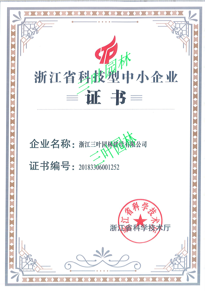 近日,三葉園林被評為“浙江省科技型中小企業(yè)”。為積極推進創(chuàng)新創(chuàng)業(yè),加快培育科技型中小企業(yè),省科技廳下發(fā)了«浙江省科技型中小企業(yè)認(rèn)定管理辦法»,主要針對從事高新技術(shù)及其產(chǎn)品的研制、開發(fā)、生產(chǎn)、銷售和服務(wù)的中小型企業(yè),把是否擁有自主知識產(chǎn)權(quán)、專有技術(shù)或先進知識作為評審認(rèn)定的核心指標(biāo)。